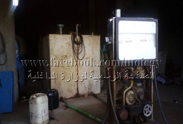 عقب تقنين الإجراءات تم إستهدافه وضبطه، كما تم ضبط ( 2 طلمبة تموين سيارات - 2 مسدس تموين "بنزين، سولار"- تانك يحتوى على 1700 لتر سـولار - تانك يحتوى على 500 لتر بنزين 80 ).