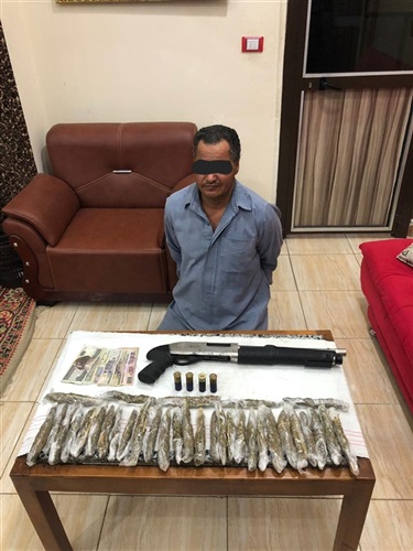 عقب تقنين الإجراءات ،تمكن رئيس مباحث مركز الحامول،ومعاونيه،من ضبط المتهم "خ.ا.م" 48 سنة،عاطل،ومقيم قرية الغابات – مركز الحامول،(سبق إتهامه في عدد 4 قضايا مابين سلاح ناري،مشاجرة،سرقة بالإكراه،سرقة،آخرهم القضية رقم 1756 جنح مركز الحامول لسنة 2010 "سرقة" )،وبحوزته سلاح ناري عبارة عن "فرد خرطوش،4 طلقات من ذات العيار" بقصد الدفاع عن النفس،وكيلو جرام من نبات البانجو المخدر،بقصد الإتجار،ومبلغ 210 جنيهًا متحصلات تجارته غيرالمشروعة،وهاتف محمول،لسهولة الإتصال بعملائه،وتحرر المحضر 35344 جنايات مركز الحامول لسنة 2018.