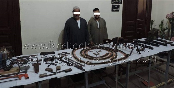 كما إعترف المتهمان الأول والثانى ، بتحصلهما على الأسلحة المضبوطة من شخص يُدعى/محمد ك.ف ، سن 25 ، مزارع ، مقيم بدائرة مركز شرطة صدفا - بأسيوط ، وبإستهدافه بالإشتراك مع إدارة البحث الجنائى بأمن أسيوط أمكن ضبطه ووالده/كمال ، سن 48 ، عاطل ، مسجل شقى خطر "إتجار فى الأسلحة" ، سبق إتهامه فى 14 قضية "سلاح ، إطلاق أعيرة نارية ، شروع فى قتل") وتبين قيامهما بإدارة ورشة لتصنيع الأسلحة النارية ، وبحوزتهما ( 7 قطع سلاح نارى - 533 طلقة مختلفة الأعيرة ( رشاش جرينوف - عدد 2 شريط، عدد 522 طلقة من ذات العيار - 3 بندقية خرطوش- 3 فرد محلى الصنع- عدد 10 طلقات آلية – عدد 4 خرينة - أجزاء لأسلحة- عدد وأدوات التصنيع) ، وبمواجهتهما إعترفا بحيازتهما المضبوطات بقصد الإتجار وتصنيع وإصلاح الأسلحة النارية ، وجارى تكثيف الجهود الأمنية لضبط المتهم الهارب.