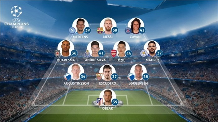 خط الوسط: رياض محرز (ليستر سيتي) - مسعود أوزيل (أرسنال) - أندريه سيلفا (بورتو) - كواريزما (بشكتاش)
