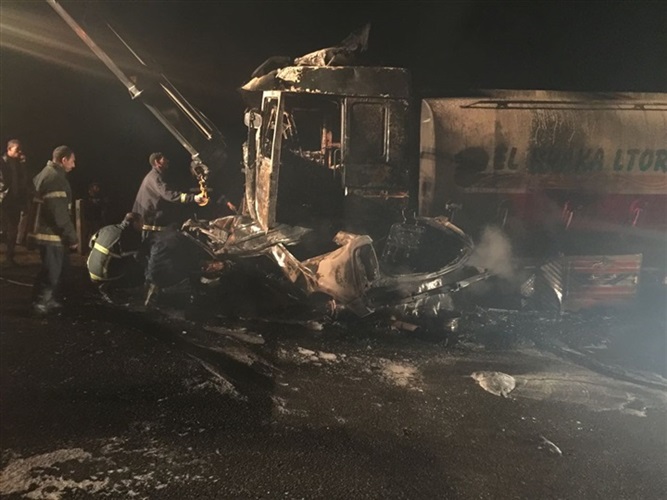المقابل، مما نتج عنه اشتعال السيارة الأولى وتفحمها بالكامل واشتعال كابينة السيارة