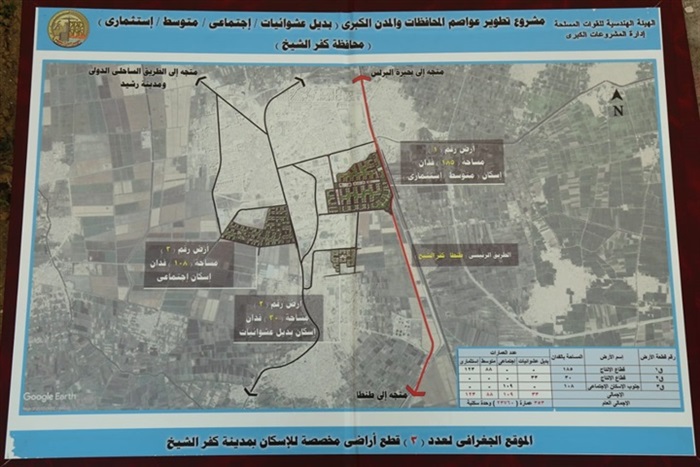 وأضاف محافظ كفر الشيخ، أما المنطقة الثانية على قطعة أرض بمساحة 30 فدان بمنطقة شرق مدينة كفر الشيخ، والمنطقة الثالثة على مساحة 108 فدان غرب مدينة كفر الشيخ " جنوب وشرق عمارات الإسكان الاجتماعي الحالي بغرب المدينة" ، وبذلك تنتهي معاناة المواطنين الحاجزين والتي تجاوزت 17 عاماً.
