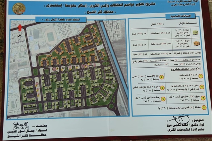 قال محافظ كفر الشيخ، تم الانتهاء من أخر الإجراءات التحضيرية للبدء خلال هذا الأسبوع في الأعمال التنفيذية، لبناء العمارات السكنية بشرق وغرب العاصمة، بوضع الأساسات لعمارات الإسكان الاجتماعي والمتوسط والاستثماري ب3 مناطق الأولى على مساحة 185 فدان بجوار ميدان الملك عبدالله.