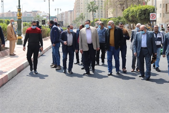 كما تابع المحافظ الأعمال الجارية لتطوير وتنسيق وتجميل الشارع بالكامل من إنارة وكهرباء وأعمدة ديكورية وتشجير ورصف وأرصفة مضيئة وبلدورات ومحطات إنتظار للأتوبيسات والسيارات وعمل اماكن وممرات صعود ونزول واضاءة على جانبى الرصيف لخدمة ذوى الهمم .