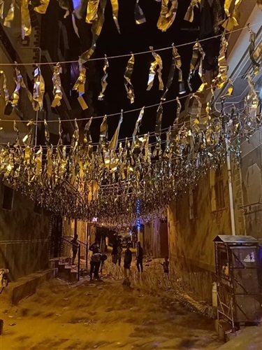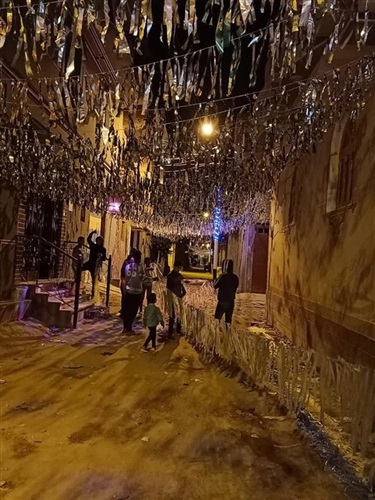 وفي منافسة بينهم، نظم شباب الشوارع بالمدينة أنفسهم للبدء في تزيين أزقة شوارعهم الصغيرة، مزينيين المنازل بالفوانيس والحبال المضيئة، والأوراق اللامعة، وسط أجواء من البهجة والسعادة علي وجوههم جميعًا.