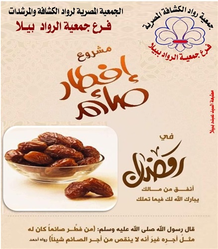 لذلك قررت جمعية رواد الكشافة والمرشدات فرع بيلا بمحافظة كفر الشيخ، برئاسة الزميل السيد عنتر، إطلاق مشروع « إفطار صائم علي الطريق»، لتوزيع وجبات على الطرق العامة ووسائل المواصلات وبعض المصالح الخدمة.