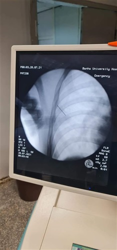 وأوضح الدكتور محمد الجزار استشارى جراحة القلب والصدر ، أن الدبوس استقر بعضلات الصدر، واخترق جزء منه القفص الصدري، مما أدي إلي استرواح هوائى وتجمع دموي بالغشاء البللورى المبطن للرئة اليمنى، وعلى الفور تم إدخاله لغرفة العمليات علي الفور بطوارئ المستشفى، وجري استخراج الدبوس باستخدام جهاز الأشعة (c-arm).