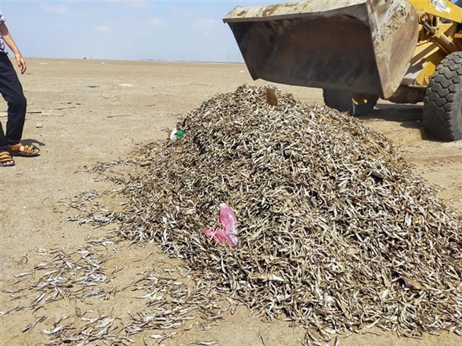 إعدام أعداد من مناشر الأسماك النافقة بقرية بلطيم