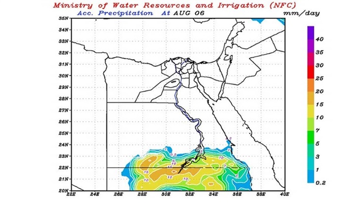 كما أشارت نتائج نماذج التنبؤ بالإمطار بمركز التنبؤ بقطاع التخطيط وخرائط الأمطار على جمهورية مصر العربية خلال الفترة من ٥ أغسطس وحتى ٧ أغسطس ٢٠٢١.