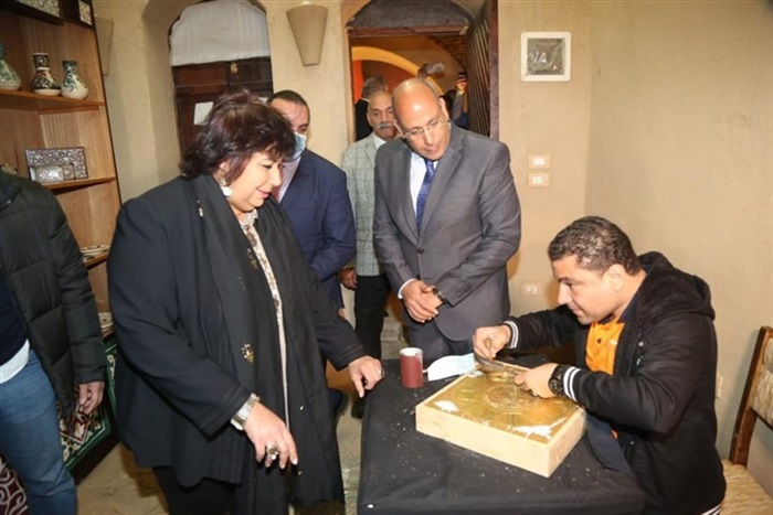 تضمن الافتتاح تفقد قصر الثفافة ثم تم ازاحة الستار عن المشروع وتفقد منطقة الخان التى تضم عدد من ورش التقليدية إلى جانب عرض فيلم تسجيلى عن القرية ومراحل تطويرها
