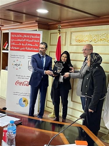 محافظ بنى سويف: مؤسسه أهل مصر للتنمية و كوكاكولا يطورون خط مياه رئيسى يغذي 6 قرى أكثر احتياجا بمياه الشرب النقية