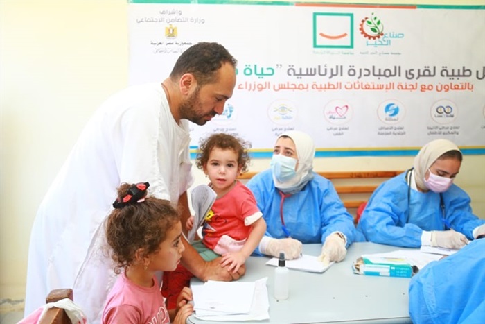 اللجنة الطبية العليا والاستغاثات بمجلس الوزراء وجامعة طنطا ومؤسستي صناع الخير للتنمية و حياة كريمة والهيئة العامة للتأمين الصحي قافلة طبية شاملة بقرية النجيلة بكوم حمادة شمل ١٦ تخصص طبى مختلف وتم خلالها الكشف الطبى على ٢٣٣٦ حالة من أهالي القرية.