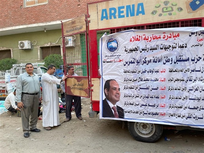 انطلاقًا من الدور المجتمعي لحزب مستقبل وطن، برئاسة المستشار عبد الوهاب عبد الرازق رئيس الحزب وتنفيذاً لتوجيهات المهندس أشرف رشاد الشريف رئيس الهيئة البرلمانية الأمين العام والنائب الأول لرئيس الحزب، وبإشراف النائب علاء عابد نائب رئيس الحزب والنائب عادل ناصر أمين الحزب بمحافظة الجيزة والنائب عبدالوهاب خليل نائب رئيس الهيئة البرلمانية للحزب أمين التنظيم بالمحافظة، أطلقت أمانة مركز أبو النمرس سيارات متنقلة لبيع السلع الغذائية بأسعار مخفضة تجوب بلاد المركز.
