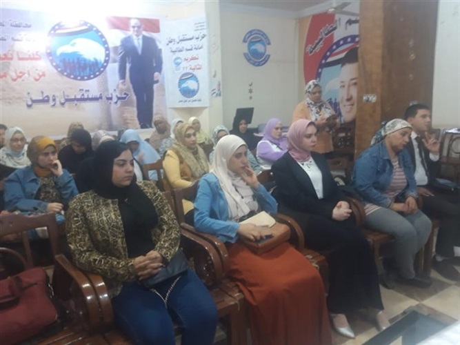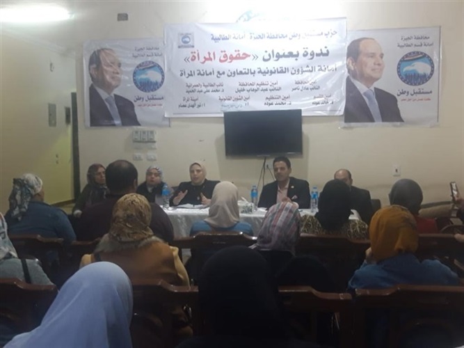 ترسيخًا لدور حزب مستقبل وطن الخدمي تحت رعاية المستشار عبدالوهاب عبدالرازق رئيس الحزب، وتنفيذاً لتوجيهات النائب أشرف رشاد رئيس الهيئة البرلمانية الأمين العام والنائب الأول لرئيس الحزب، وتحت إشراف النائب علاء عابد نائب رئيس الحزب والنائب عادل ناصر أمين الحزب بمحافظة الجيزة والنائب عبدالوهاب خليل نائب رئيس الهيئة البرلمانية للحزب أمين تنظيم المحافظة، نظمت أمانة الطالبية ندوة تثقيفية بعنوان "حقوق المرأة شرعًا وقانونًا".