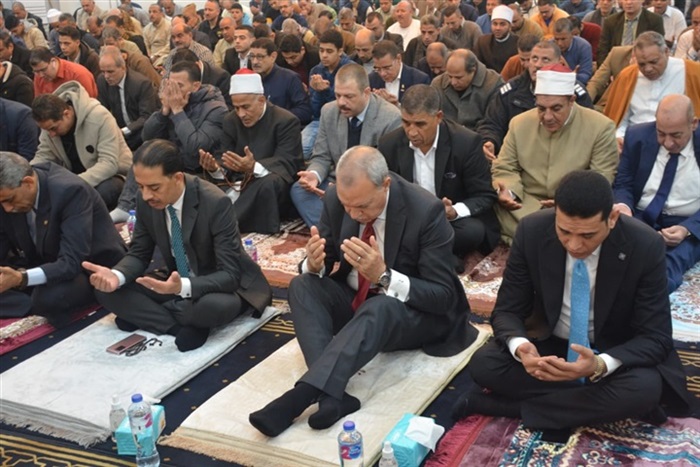 ثم أدى المحافظ صلاة الجمعة بالمسجد وسط جموع المصلين من أبناء المدينة ، ثم استمع الحضور إلى الخطبة التي ألقاها وكيل وزارة الأوقاف حيث أكد أن مصر دائما محفوظة بحفظ الله ودائما ما يُسخر لها أبنائها ليعمروا بيوت الله ويشيدوها حيث وفق الله أهل القرية لاقامة هذا المسجد والصرح الكبير ليرفع فيه شعائر الله ويذكر فيها اسمه.