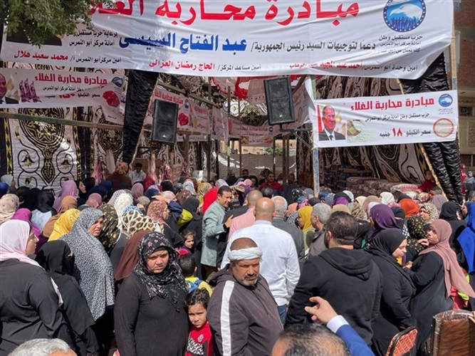 أشار "أمين الحزب بالمركز"، إلى أن الشادر شهد حشودًا كبيرة من الأهالي في ظل انخفاض أسعار المعروضات، حيث يتم بيع كيلو اللحم البلدي بسعر ١٥٠ جنيهًا وكيلو الأرز ١٨ جنيهًا وكيلو السكر ب ١٥ جنيه وكيس المكرونة ٤ جنيه وزجاجة زيت بسعر ٣٥ جنيه و٣ كيلو بطاطس ١٠ جنيه و٣ كيلو طماطم ١٠ جنيه و٢ كيلو بصل بـ ١٥ جنيه وطبق البيض بسعر ٨٥ جنيه.