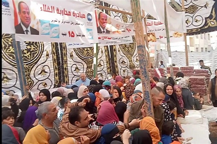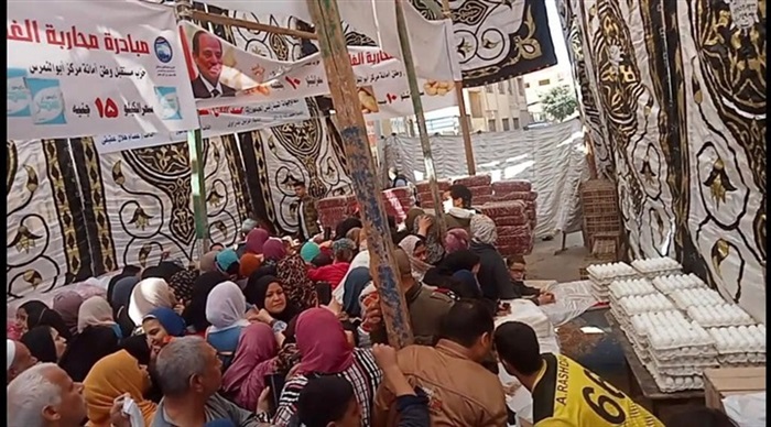 وفى اقبال كبير من الاهالى على الشادر يتم بيع كيلو اللحم البلدي بسعر ١٥٠ جنيه وكيلو الأرز بسعر ١٨ جنيه وكيلو السكر بسعر ١٥ جنيه وكيس مكرونه ٤ جنيه وزجاجة الزيت ٣٥ جنيه و٣كيلو بطاطس ١٠ جنيهات و٣ كيلو طماطم بسعر ١٠ جنيهات و٢ كيلو بصل ١٥ جنيهًا وطبق البيض بسعر ٨٥ جنيهًا.