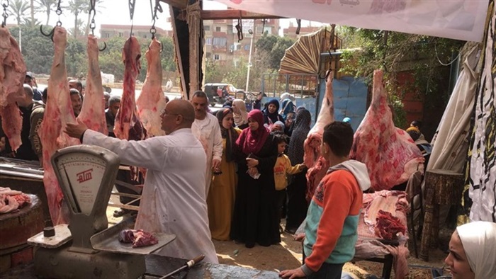 إقبال كبير من أهالي أبو النمرس على شادر «مستقبل وطن» لبيع اللحوم والسلع الغذائية بأسعار مخفضة