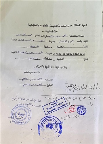أما على محمد صبرى عبدالمقصود معلم أول بإدارة شربين ، فيقول : إنه تقدم بأوراقه لشغل وظيفة وكيل إدارة شربين ، واجتاز مقابلة لجنة الموارد البشرية المكونة من مدير المديرية ووكيل المديرية ، وتم ترشيحه للوظيفة ، وبعد الانتهاء من التدريب ماطل مدير المديرية ، وقال سأوزعك مع آخرين فى نشرات لاحقة ، وفى سياق متصل يؤكد على صبرى أنه فوجىء بتكليف السيدة سعاد محمد عبدالرازق وكيلًا لإدارة شربين لحين شغلها قانوناً ، رغم أنها لم تتقدم بأوراقها للوظيفة ، ولم تحضر مقابلة لجنة الموارد البشرية أو التدريب .