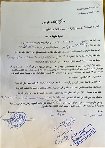 وامتد الأمر إلى الضغط على مدارس اللغات بقبول طلاب فوق كثافة 10٪ ، مع العلم بأن إحدى المدارس ، وهي مدرسة الفردوس الرسمية للغات أرسلت مذكرة تفيد عدم قدرتها الاستيعابية على ذلك ، وكذا نقل معلمة من إدارة شربين التعليمية إلى ديوان المديرية بالمخالفة الصارخة لكل القواعد والقوانين .