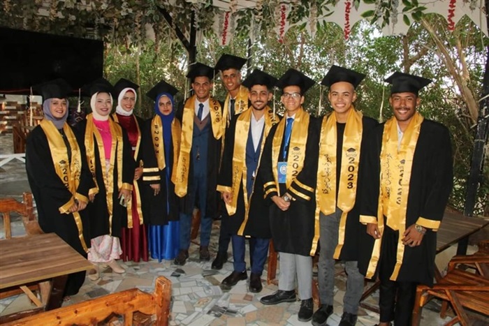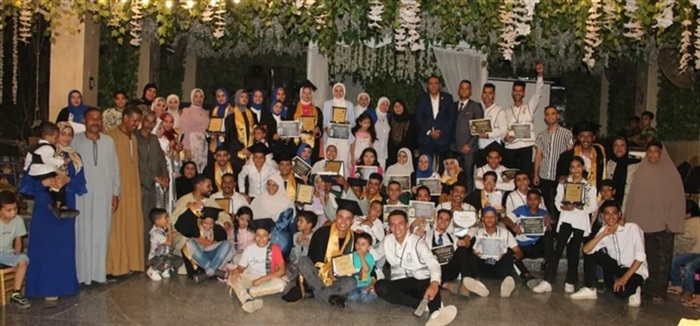 حيث بدأ الحفل بالسلام الوطني الجمهورى يليه تلاوه عطره من القرآن الكريم ويليه كلمات الترحيب والتهاني الخرجين وذويهم