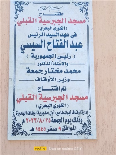 مسجد الجبرسية القبلي - قرية الخوري البحرية - أبو المطامير على مساحة 175 م 2 بتكلفة إجمالية 2 مليون جنيه.