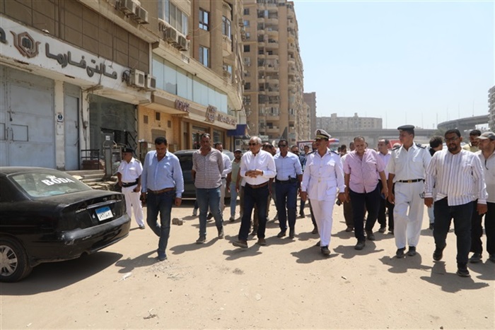 حيث تفقد المحافظ نسب التغطية والأعمال الإنشائية لساحات الانتظار ومواقف السرفيس والمنطقة التجارية فى المنطقة من شارع الملك فيصل وحتى كوبرى الشيشينى بطريق المريوطية موجهاً بتسريع وتيرة العمل لإنجاز الأعمال وتحقيق الاستفادة منها