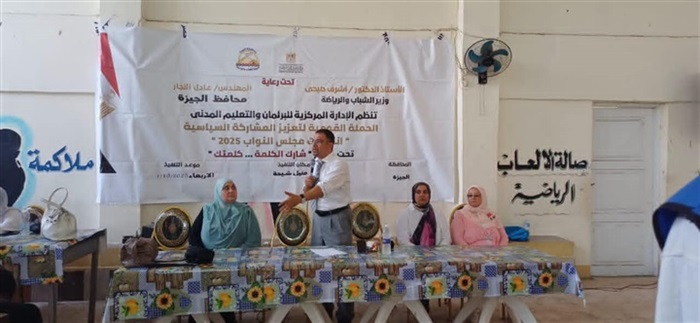 تنفذ مديرية الشباب والرياضة بالجيزة، الحملة القومية لتعزيز المشاركة السياسية بمركز شباب منيل شيحه، التابع لادارة اوسيم، يوم الثلاثاء الأول من اكتوبر 2025