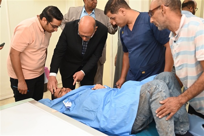 توجه الدكتور حسان النعماني رئيس جامعة سوهاج الي مستشفي الطوارئ الجامعي الجديد فور وصول الطلاب المصابين خلال حادث مروري مؤسف.