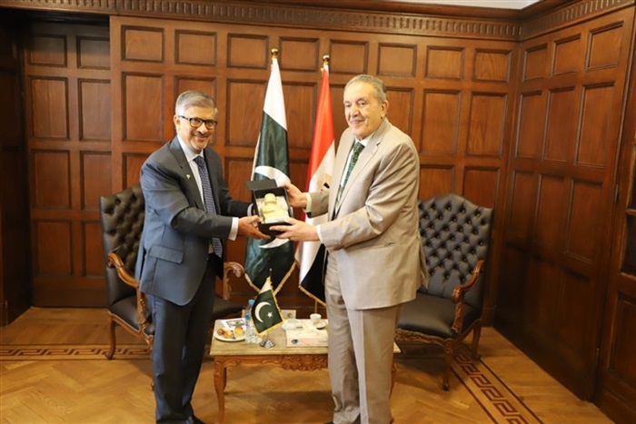 وخلال اللقاء، أكد السفير عامر شوكت أن العلاقات بين مصر وباكستان تتمتع بأسس راسخة وتاريخ مشترك من التعاون، مشيرًا إلى أن حجم التجارة الحالي بين البلدين ما يزال محدودًا نسبيًا حيث يبلغ نحو 217 مليون دولار إلا أنه متوازن ويمتلك فرصًا واعدة للنمو.