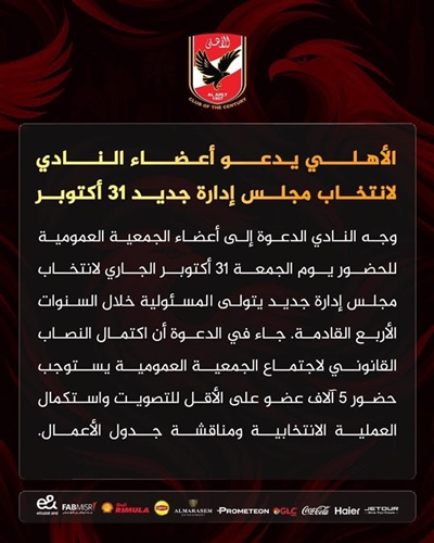 الأهلي يدعو أعضاء النادي لانتخاب مجلس إدارة جديد ..تفاصيل