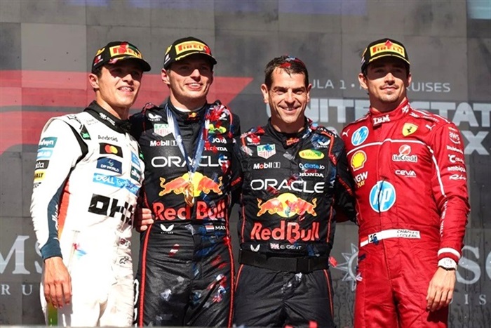 تمكن بطل العالم الرباعى وحامل لقب بطولة السائقين للموسم الماضى - الهولندى/ ماكس فيرستابن ، وسائق ريد بُل من فرض سيطرته بمجريات جولة أوستن الأمريكية ببطولة العالم للفورمولا 1 ، ليس فقط بسباق الأحد الرسمى .. ولكن بسباق السبت القصير أيضاً ، ومتفوقاً على عضوى "فريق ماكلارين الفائز ببطولة الصانعين مبكراً بهذا الموسم" ، وكذا متسابقى فريق فيرارى ، حيث وقف إلى جانب فيرستابن على منصة تتويج سباق الأحد كلاً من نوريس ثانياً ولوكلير ثالثاُ.