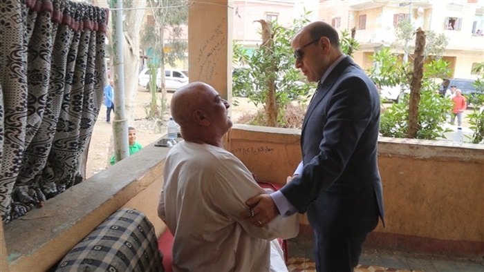 لم يتردد المحافظ لحظة واحدة، وقطع جولته متجهًا إلى منزل الرجل المسن، الذي يعاني من بتر في إحدى ساقيه ويلازم الفراش منذ فترة طويلة، حيث جلس إلى جواره واطمأن على حالته الصحية، متحدثًا معه في ودٍّ وتقدير، ليمنحه لحظة إنسانية صادقة أعادت إليه البسمة والأمل.