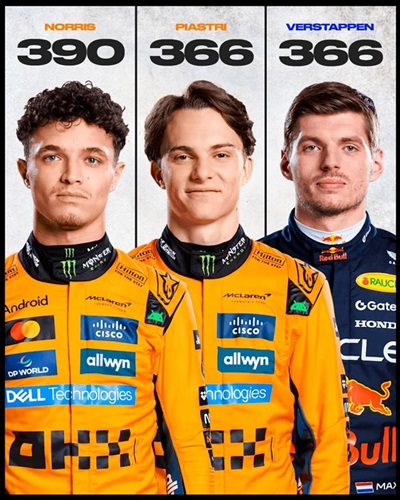 ومع هذه النتيجة، تجددت آمال ماكس فيرستابن للمنافسة على لقب بطولة السائقين حيث أصبح فارق النقاط بينه ونوريس المتصدر مؤقتاً مع 24 نقطة ، وبنفس الوقت مساوياً لنقاط بياسترى بـ 366 نقطة لكل منهما، فيما يبقى سباقين حتى نهاية الموسم وهما قطر وأبوظبى .. وأحدهما وهو السباق القطرى يشمل سباقاً قصيراً مع فرصة جيدة لجمع المزيد من النقاط.