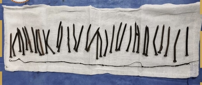 استخراج 34 مسمارًا حديديًا من معدة مريضة بدون جراحة بمستشفى كفر الشيخ العام
