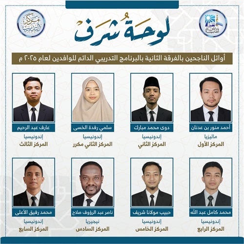 ويَسعد مركز التدريب بدار الإفتاء المصرية أن يتقدم بخالص التهاني وأصدق التبريكات إلى الطلاب الناجحين، متمنيًا لهم دوام التوفيق والسداد في مسيرتهم العلمية والعملية.