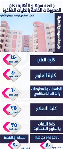 جامعة سوهاج الأهلية تعلن المصروفات الدراسية للكليات للقبول بالفصل الدراسي الثاني 2025/2026