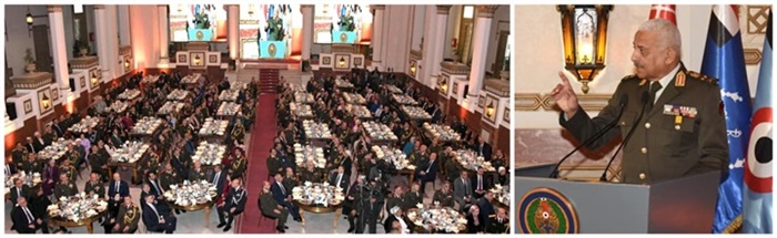 وألقى الفريق أول عبد المجيد صقر كلمة نقل خلالها تحيات وتهنئة السيد الرئيس عبد الفتاح السيسى رئيس الجمهورية القائد الأعلى للقوات المسلحة لعناصر التمثيل الدبلوماسى العسكرى على إنتهاء