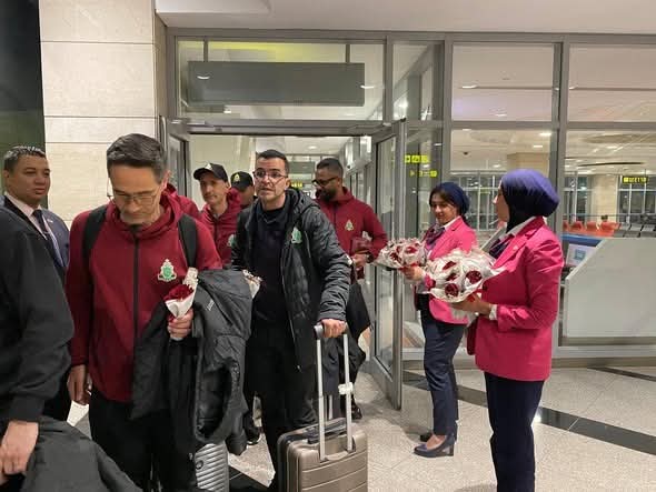 وحظيت بعثة الفريق المغربي باستقبال رسمي مميز فور وصولها، حيث كان في استقبالها عدد من المسؤولين، الذين حرصوا على الترحيب بأفراد البعثة وتقديم الورود لهم، في لفتة ودية تعكس عمق العلاقات الأخوية والرياضية التي تجمع بين الناديين، فضلًا عن الروابط التاريخية بين الشعبين المصري والمغربي.