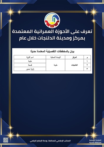 كما قامت المحافظة باعتماد 3 مخططات تفصيلية بقرية طيبة بالدلنجات وجارى العمل على الانتهاء من باقى المخططات التفصيلية