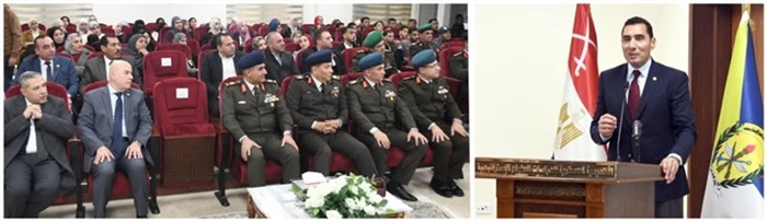 ونقل اللواء أ ح / محمد محمود عوض مدير الأكاديمية العسكرية للدراسات العليا والإستراتيجية خلال كلمته تحيات وتقدير الفريق / أشرف سالم زاهر القائد العام للقوات المسلحة وزير الدفاع والإنتاج الحربى والفريق / أحمد خليفة رئيس أركان حرب القوات المسلحة للحضور ، مؤكداً أن بناء وعى الشباب هو خط الدفاع الأول عن الدولة المصرية وأن الأكاديمية تفتح أبوابها دائماً لنقل الخبرات العلمية للنشء والشباب بما يسهم فى إعداد أجيال قادرة على المساهمة فى مسيرة التنمية الشاملة للدولة المصرية .