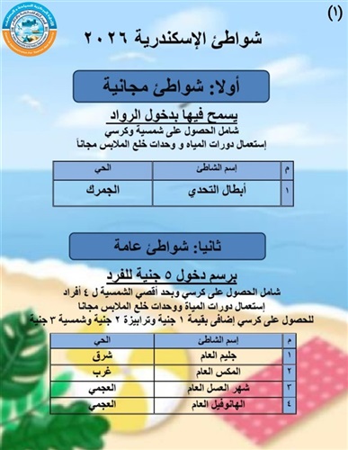 وتنقسم شواطئ الإسكندرية كالتالي:ـ