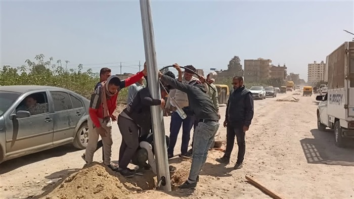 تركيب 30 عمود إنارة مزدوج بطريق السلخانة في دسوق