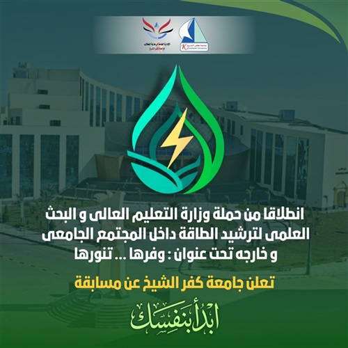 تعلن جامعة كفر الشيخ، عن إطلاق مبادرة "إبدأ بنفسك" لترشيد الاستهلاك داخل الحرم الجامعي وخارجه بين طلاب وكليات الجامعة.