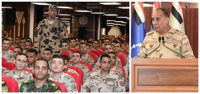 كما أوصاهم بالإنضباط الذاتى والوعى والإدراك الصحيح لما يدور حولهم من أحداث، وضرورة توخى الحذر من التعامل مع وسائل التواصل الإجتماعى بما لا يخل بمنظومة أمن وسلامة القوات المسلحة ، مؤكدا على علاقات التلاحم والتواصل الدائم بين القوات المسلحة والشرطة المدنية باعتبارهما جناحى الأمة فى الحفاظ على أمن واستقرار الوطن .