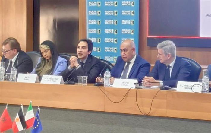 في إطار جولة ترويجية لفرص التعاون الاستثمارية والتجارية في مصر، والتي تشمل الأقاليم الصناعية الكبرى في إيطاليا، قام بسام راضى، سفير مصر في إيطاليا، بزيارة إقليم أنكونا الصناعى في الشمال الشرقي للدولة الإيطالية على رأس وفد يضم المكتب التجاري التابع للسفارة، حيث قام السفير بلقاء عمدة أنكونا الذي رافقه في زيارة تفقدية للمراكز اللوجستية في الإقليم، وفي مقدمتها المطار الجوي، والميناء البحري، والميناء الجاف، ومراكز تداول الحاويات حيث تم عقد لقاءات مع مدراء تلك المراكز للوقوف على أحدث التجارب الإيطالية والأوروبية في هذا المجال الحيوي، وكذلك عرض ما باتت تملكه مصر من بنية تحتية حديثة في تلك المجالات.