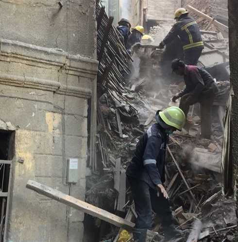 بالصور.. البحث عن مفقودين أسفل أنقاض العقار المنهار بالسيدة زينب
