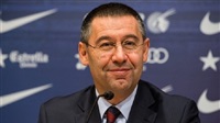رئيس نادى برشلونة الاسباني جوسيب بارتوميو على مصاحبة الفريق الاول للكرة بالنادى