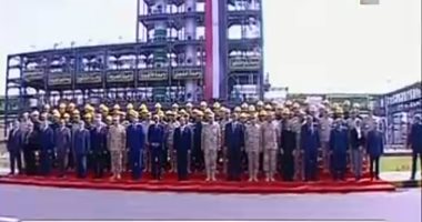 التقط الرئيس عبد الفتاح السيسى، صورة تذكارية مع عمال شركة النصر للكيماويات الوسيطة، بمنطقة أبو رواش، بمحافظة الجيزة، وذلك خلال مشاركته افتتاح مصنع الغازات الطبية والصناعية رقم ٣، ومصنع إنتاج غاز فوق أكسيد الهيدروجين.