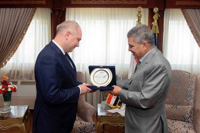 استقبل الفريق أسامة ربيع رئيس هيئة قناة السويس، اليوم الإثنين، نائب وزيرالصناعة والتجارة الروسي السيد/ أوليج ريازانتسيف ، وبرفقته قيادات شركة AK BARS الروسية إحدى الشركات العالمية الكبرى في مجال بناء السفن، بهدف بحث سبل تفعيل بروتوكول التعاون المشترك بين هيئة قناة السويس وشركة AK BARS لتطوير ترسانات الهيئة و فتح آفاقاً جديدة للتعاون في مجالات إصلاح وبناء السفن بكافة أنواعها وفئاتها، وذلك بمبنى الإرشاد بالإسماعيلية.